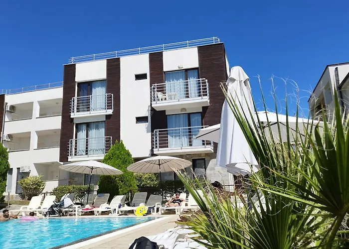 Az Anna Minik Studio BG mellett elhelyezkedő, 3 csillagos New Line Village Apartments Napospart 10 perces autóútra fekszik az az Action vízi park területétől. Az ingatlan 9 vendégszobával rendelkezik, melyek mindegyike étkezővel, ülősarokkal és külön WC-vel van ellátva a kellemes tartózkodásért Napospart városában.